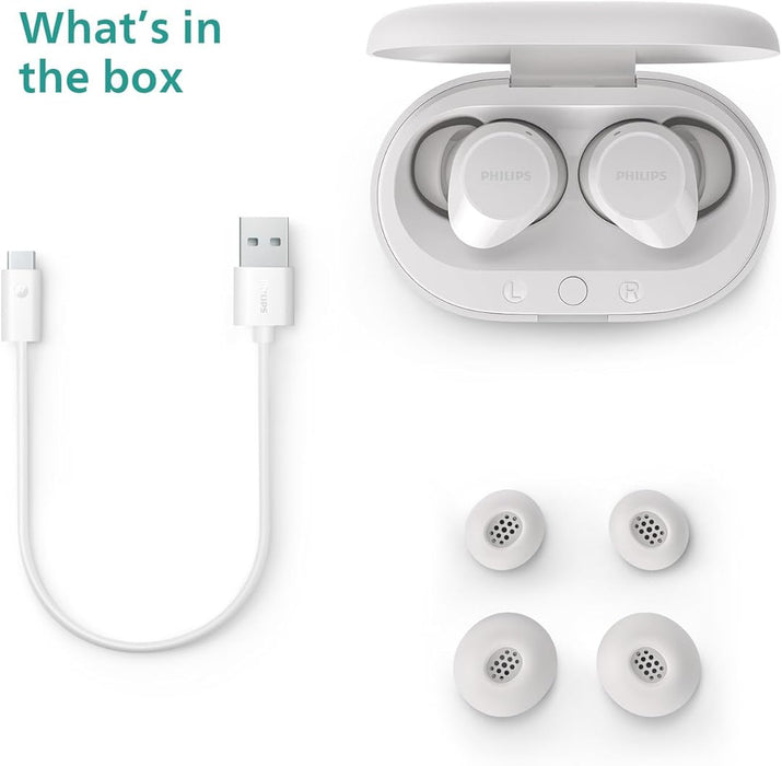- Experience exceptional audio quality with the sleek and stylish Philips TAT1209 True Wireless Earbuds in White.