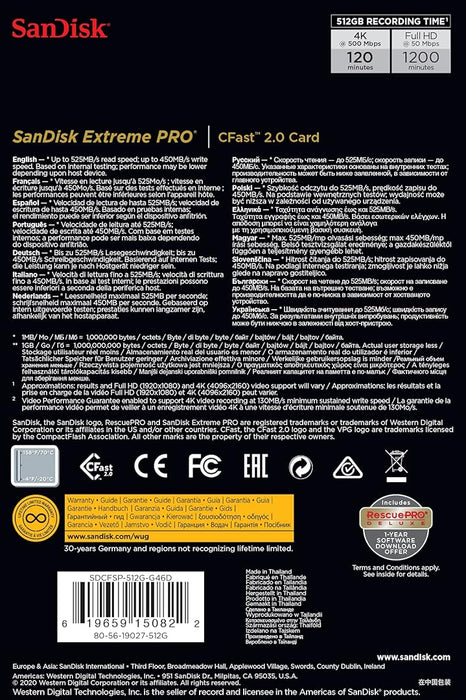 Sandisk Extreme PRO CFast 2.0 (512GB, SDCFSP-512G-G46D)