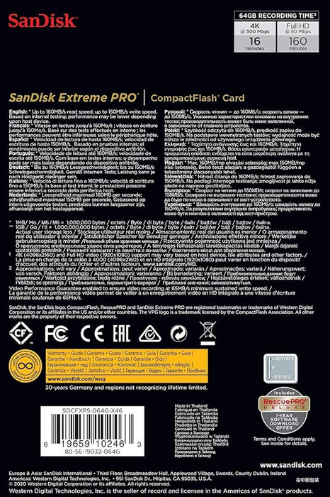 - The Sandisk Extreme Pro CompactFlash (SDCFXPS-064G-X46) is a high-performance memory card designed for professional photographers and videographers.